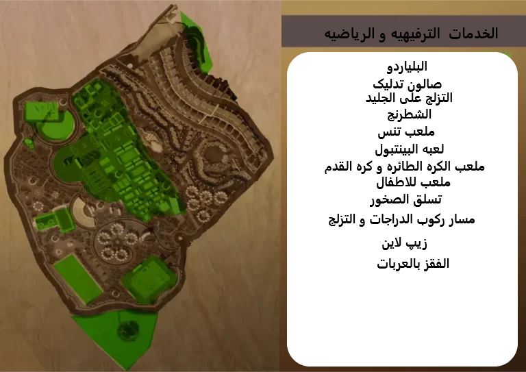 القرية السكنية ٢: تتميز هذه القرية بطابعها العصري، حيث تجمع بين الإقامة العائلية والسياحة في قلب الطبيعة. وقد ساهم استخدام التصميم المعماري المستدام، والطاقة المتجددة، والمساحات المشتركة كالساحات المركزية والأسواق المحلية في تحويل هذه المنطقة إلى نموذج للحياة الاجتماعية الديناميكية المنسجمة مع البيئة.